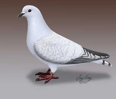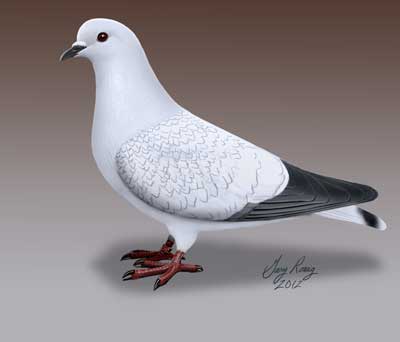 Strong, field pigeon shape with low station, muffed or clean legged, always plain headed. Clean legged Ice are a little slimmer in appearance with tighter feathers than the muffed. Very light blue color in all types. Feathers contain some fine powder which adds to the softness of the color. Eye color varies between types.
