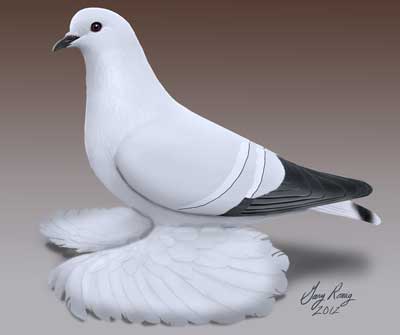 One of the oldest of the German Color Pigeons. Originally from South Germany which were clean legged. The feather footed from Saxony, Silesia and Lausitz. The checkered Ice (Forellen) were developed in Silesia and South Germany.